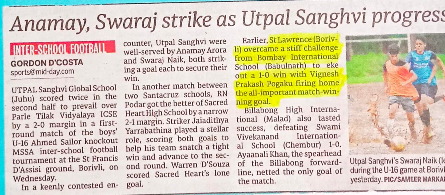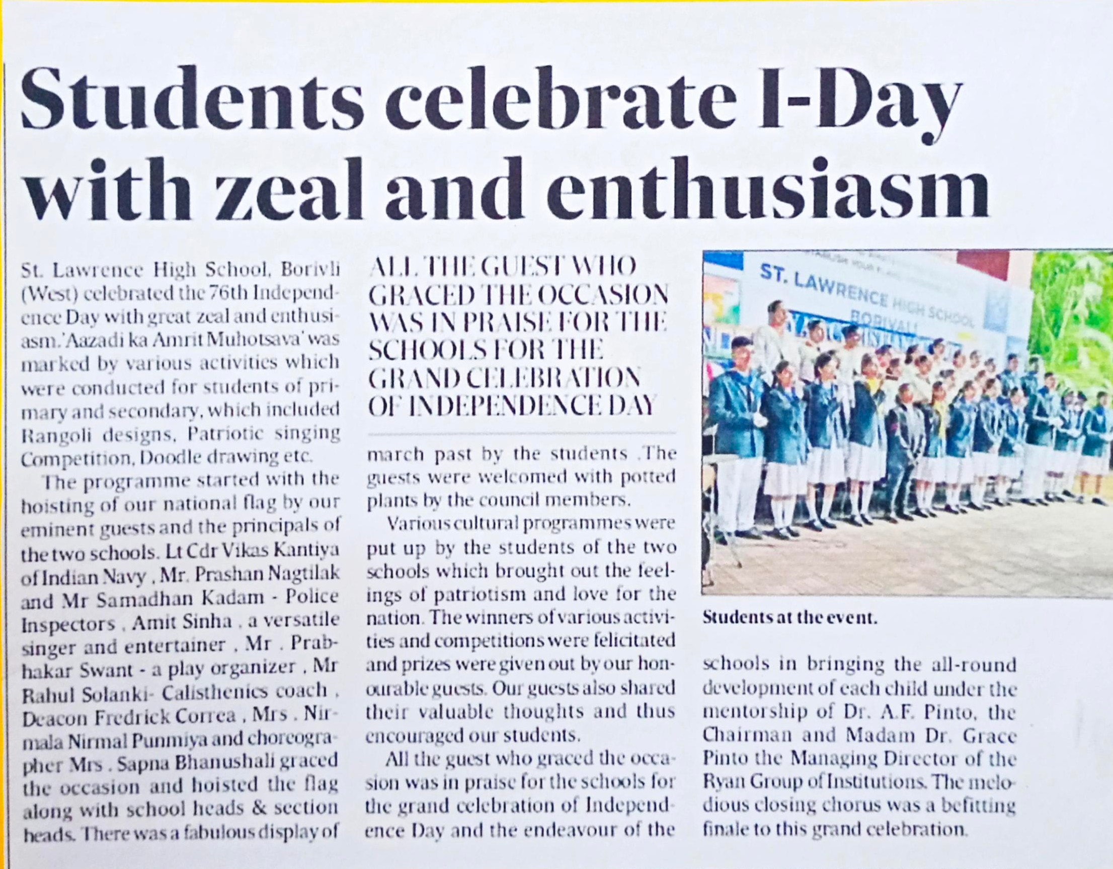 St. Lawrence High School, Borivali West, was established in 1993 to offer high-quality education to the students of all strata of our society.