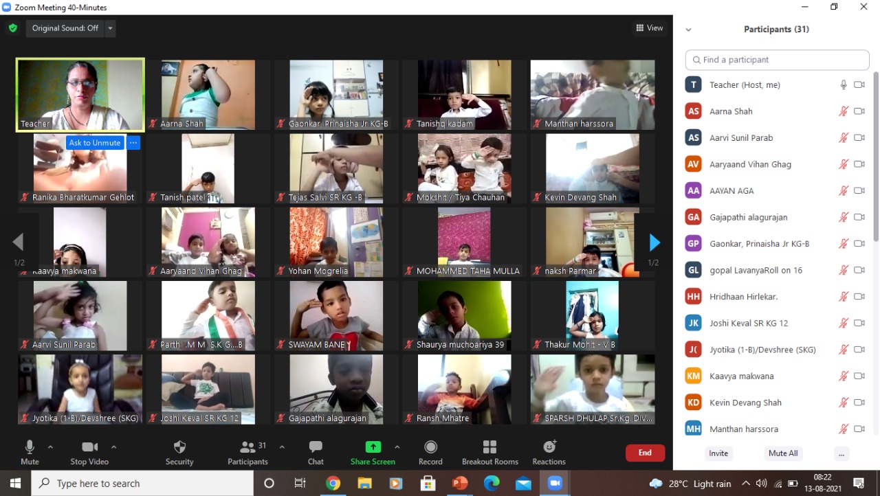 I, parent of Miss. Vidhi D. Salunkhe, studying in Standard V-A would like to express my gratitude towards the school for playing a vital role in strengthening and building the future of our country.
